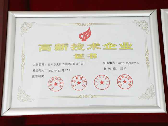 • 江苏省钢结构行业优异证书
